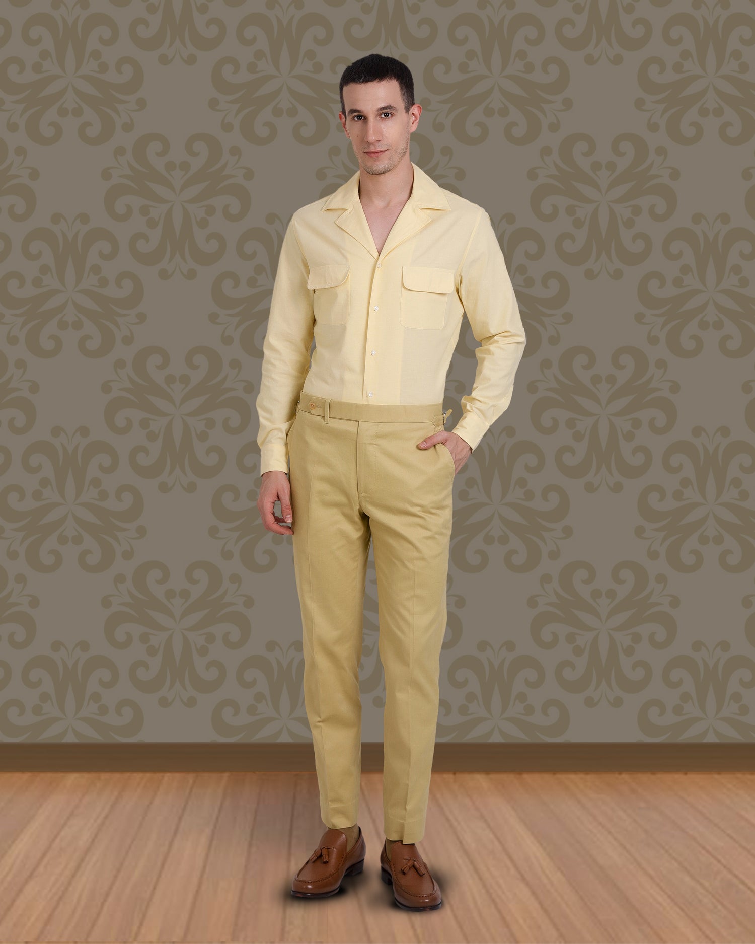 Camp Collar Shirt in Pale Yellow Fresco Chambray