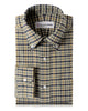 Navy Green Tattersall On Beige Flannel Shirt